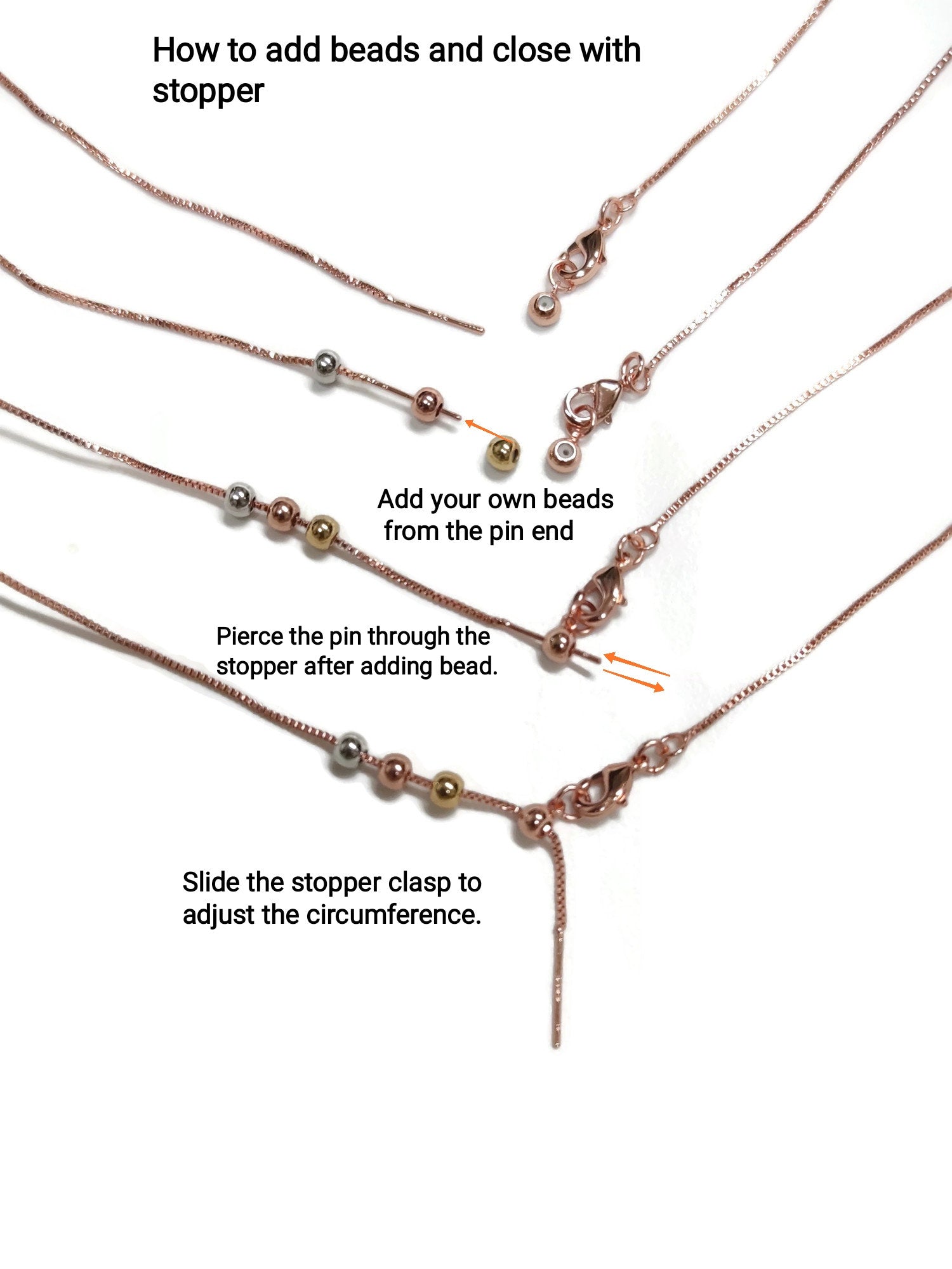 Pin Stopper Adjustable Box Chain Bracelet Slider Clasp Add Your Own Bead Brass High Quality Plated